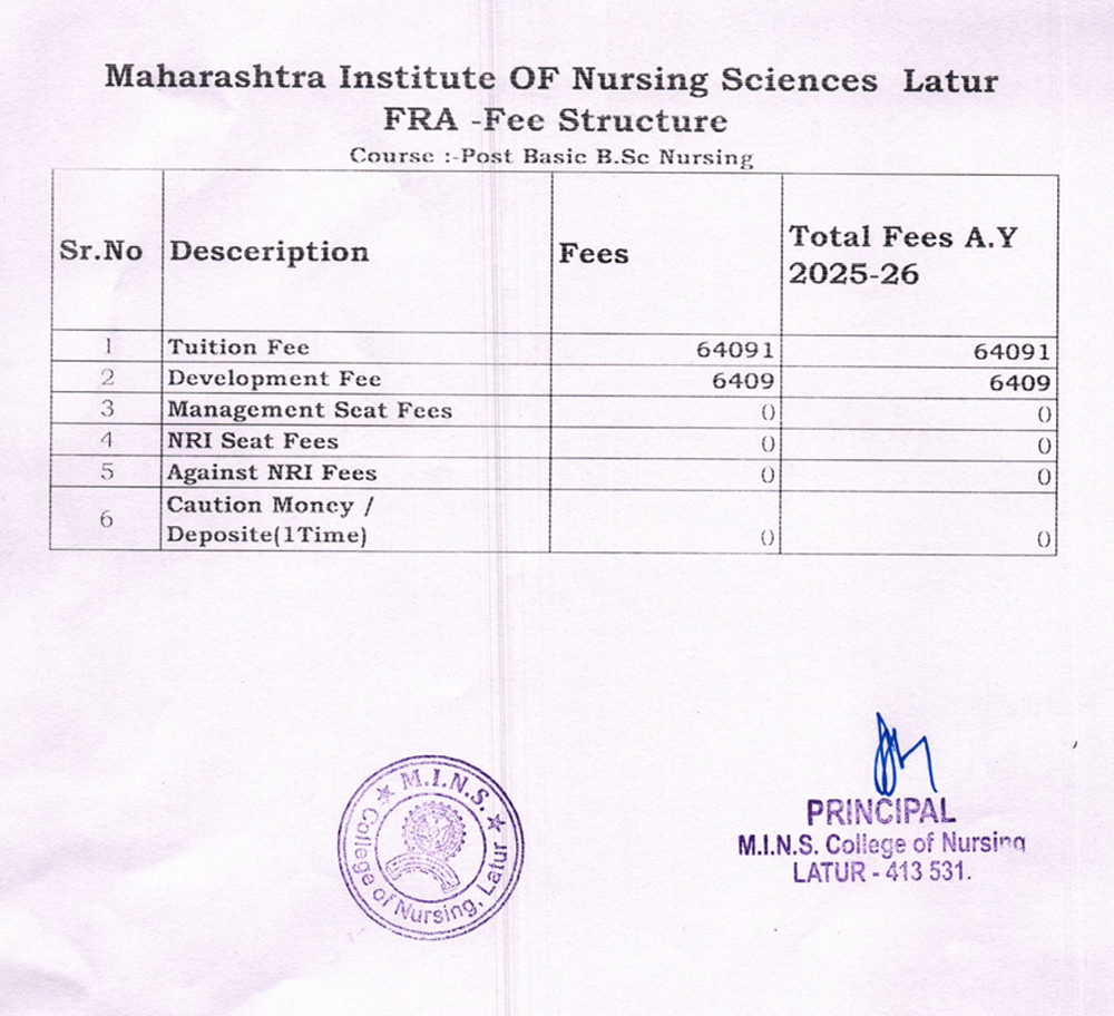Heartily welcome to you in Maharashtra Institute of Nursing Sciences, Splendid temple of learning. I am happy to learn about your keenness for joining our institute.